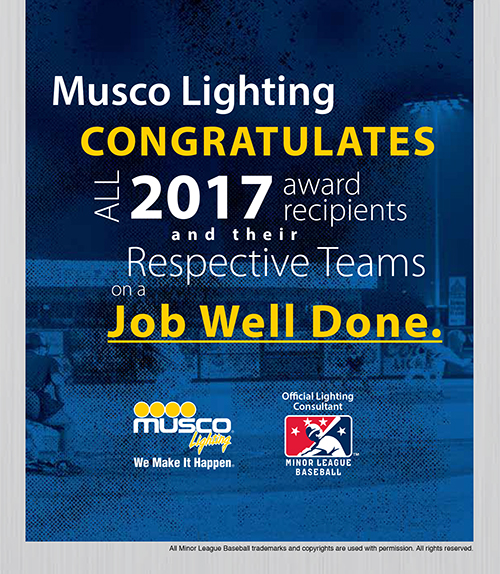 Worked with Minor League Baseball and Musco executive team to develop a table tent that supports the award ceremony's theme.